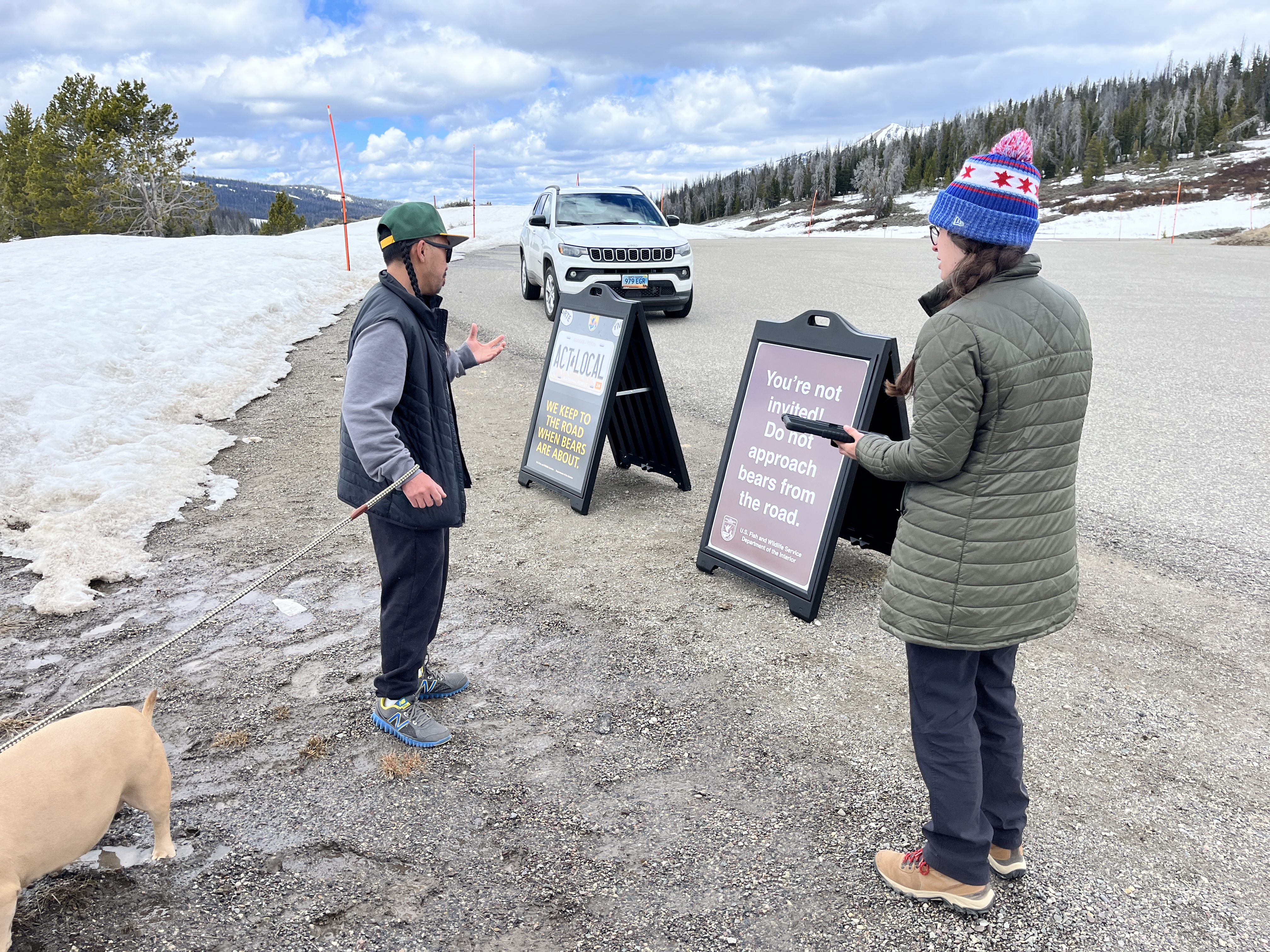 Visitor-wildlife conflict is a pressing issue in the Greater Yellowstone Ecoregion (GYE), with grizzly bear encounters near roadways posing significant risks to both humans and animals. Despite the dangers, many visitors seek close interactions with bears, leading to unsafe behaviors such as leaving vehicles to approach wildlife. Traditional messaging has struggled to address this “bear blindness,” necessitating a design-focused reevaluation of roadside bear safety signage.